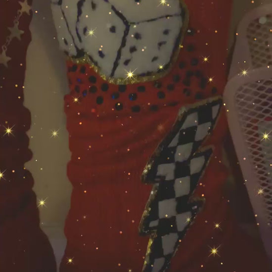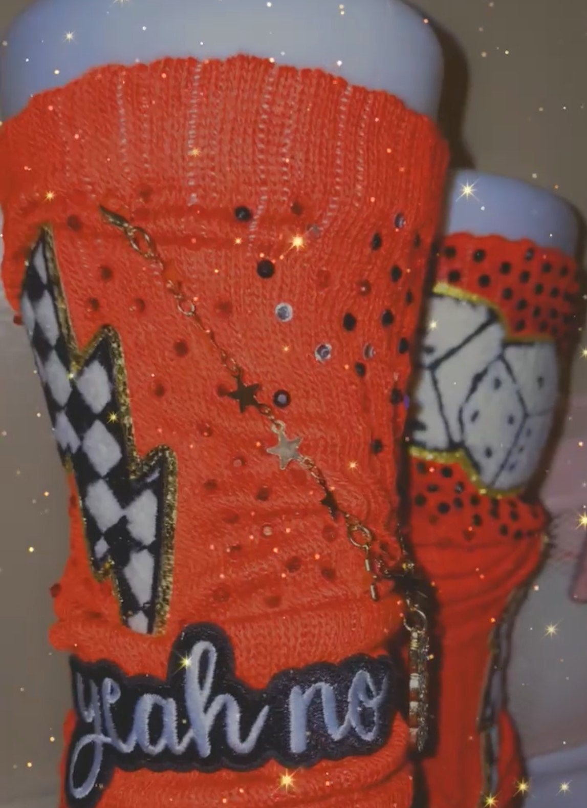 Elevate your style with these bold slouch socks featuring vibrant red bossed accents, striking dice, lightning bolts, and chains. Perfect for adding an edge to any outfit, their unique design ensures you stand out while enjoying comfortable wear all day long. Make a statement without saying a word.